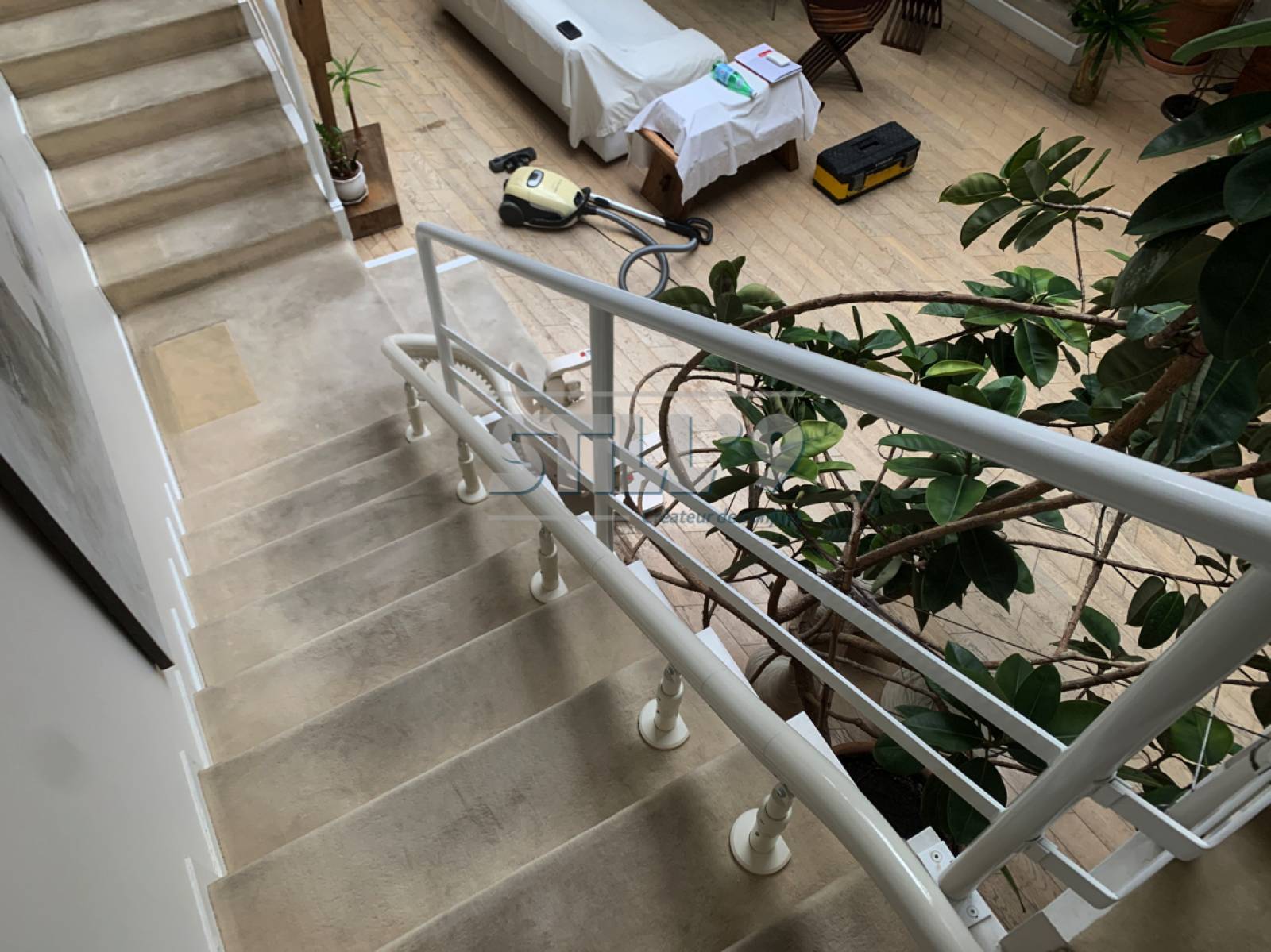 Concernant le haut de l'escalier, le fauteuil monte personne intérieur est quant à lui stationné sur le palier avec une prolongation du rail de quelques centimètres pour permettre de se relever en toute sécurité avec un espace dégagé.