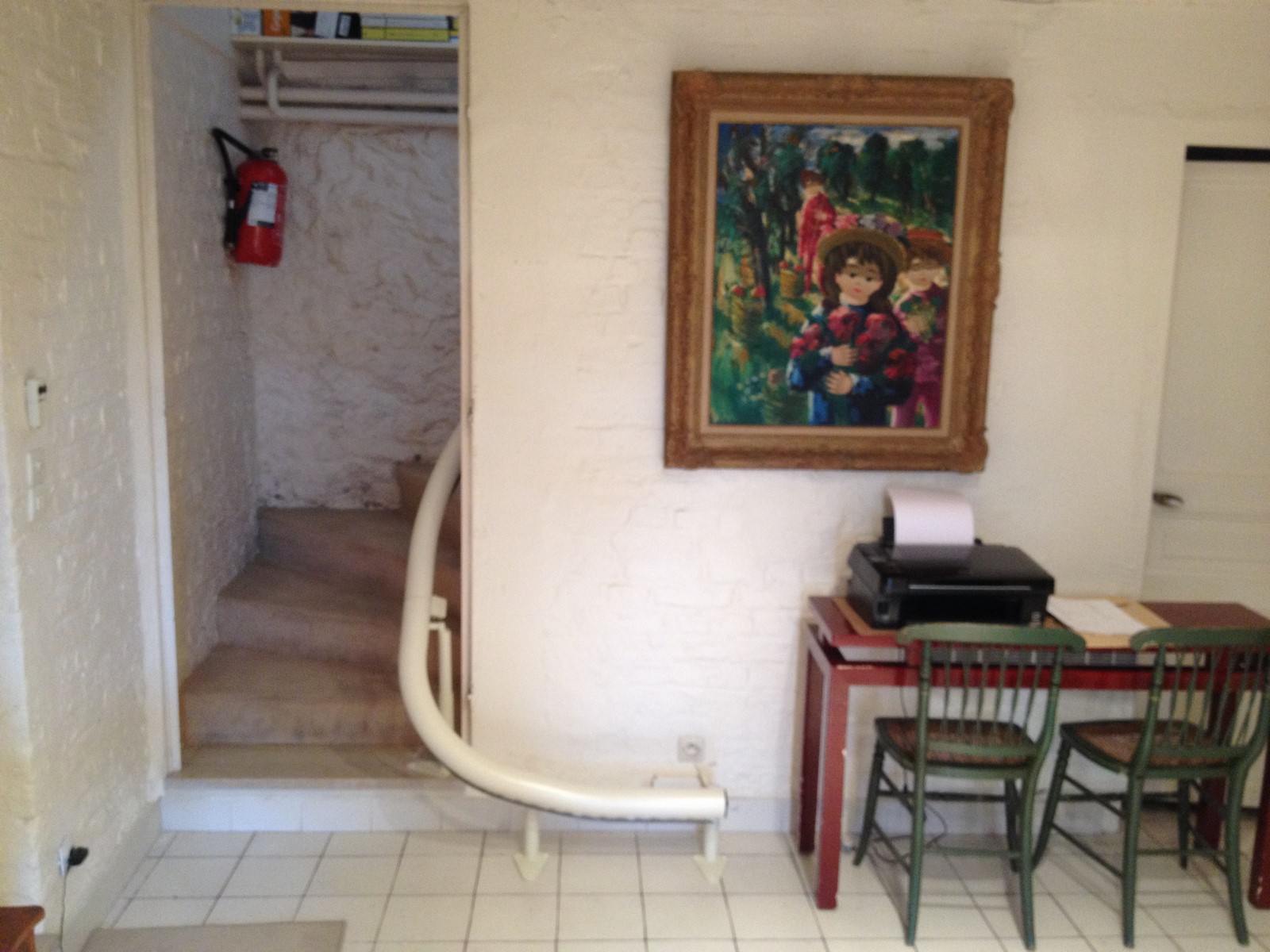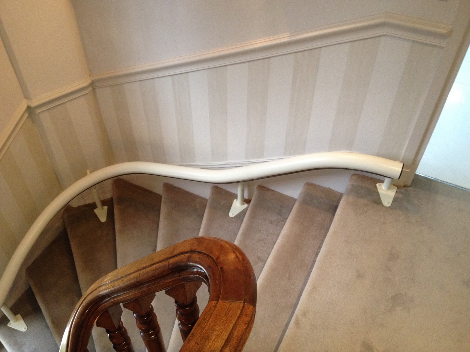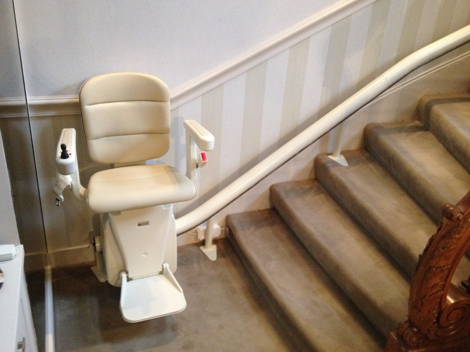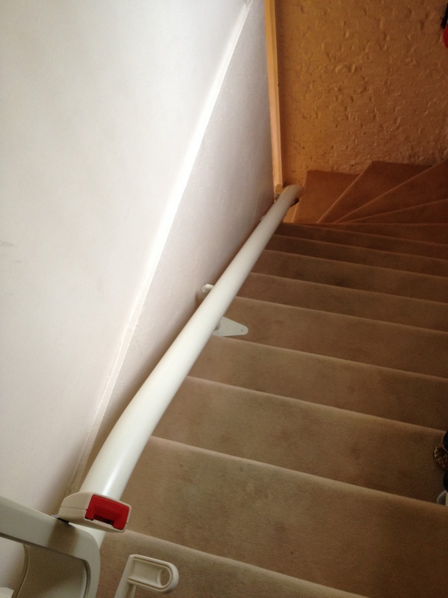 Ce siège monte handicapé a été placé sur la courbe extérieure de l'escalier et nous avons procédé a une prolongation du rail en bas de l'escalier.